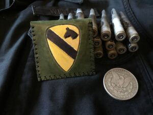 – Etui en cuir 1° choix cousu à la main au double point gantier avec un fil très résistant dit « au chinois ». Finition Hell’s Gate.