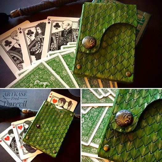 Design Artkase pour cet étui du jeu inspiré de la maison Serpentard des romans Harry Potter. Martelage pour un effet écaille de serpent.