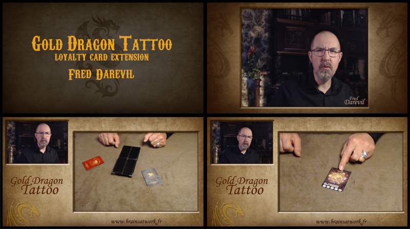 Depuis sa sortie Gold Dragon Tattoo connait un succès constant auprès des magiciens et mentalistes amateurs et professionnels et plus encore auprès du public. Vous pouvez désormais réaliser une étonnante prédiction en plus de l’effet d’origine avec la carte de fidélité du salon de tatouages ! Le plus étonnant est que la prédiction était visible depuis le départ… sur la photo du salon visible sur la carte de fidélité !..